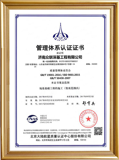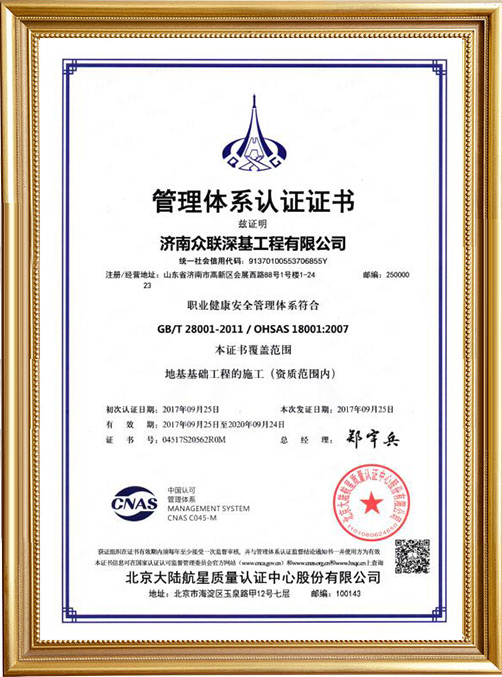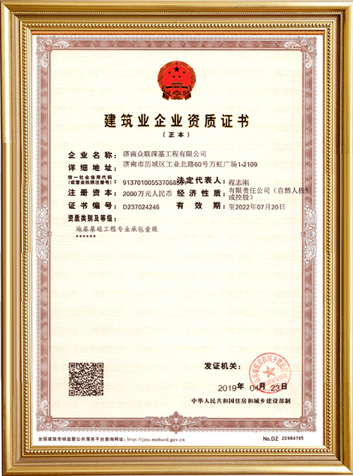 山東眾聯(lián)恒信工程集團(tuán)有限公司成立于2010年4月20日,注冊資金2000萬元,固定資產(chǎn)8500萬元,公司主要從事地基基礎(chǔ)、勘察、設(shè)計(jì)等方面的專業(yè)承包,地基基礎(chǔ)專業(yè)施工資質(zhì)壹級。